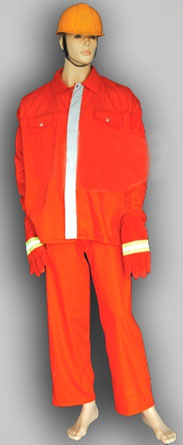 普通防护服具有阻燃、抗温等特点,是消防队员在灭火战斗中保护自身而通常穿着的作业服,也可在一些企事业单位用作防火服、防水服