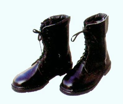 真皮半高腰型式,带钢包头、钢底板。帮面材料为皮革,靴底材料为橡胶。性能:防穿刺、防滑、耐热性能强。