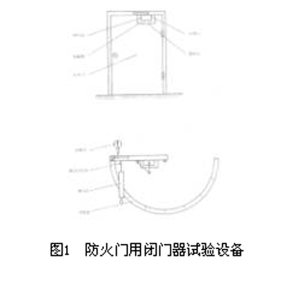 1 主题与适用范围 本标准规定了防火门用闭门器的试验方法和检验规则。 本标准适用于安装在防火门上使用的闭门器。 2 引用标准 GB 9305 闭门器 GB 4716 点型感温火灾探测器技术要求及试验方法 3 试验设备 火门用闭门器试验设备,由防火门、刻度盘、测力计挂钩、测力计、保温罩、位移计等组成,见图1。 3.1 试验设备 供闭门器试验用防火门。门扇尺寸b×h,mm:900×2000,重量为25kg。通过配重,门扇重量可增至40、60、80、100kg,以适应被测闭门器的规格。 3.2 刻度盘。用金属材料制成的刻度盘安装在门扇下部,在门扇厚度的中心线上有一指针,指针对着刻度盘。 3.3 测力计挂钩。挂钩位于距门扇下边缘高1000mm,距门轴转动中心880mm处。 3.4 测力计。测力计实测负载应相当于测力计量程的20%~80%。 3.5 保温罩。保温罩正面采用耐热透明材料,以便观察被观测闭门器试验期间有无破损、变形现象。保温罩上设有进、出风口。 3.6 位移计。位移计采用机械式百分表。百分表的测头与全关闭后的门扇垂直接触,接触点距门轴转动中心800mm。 3.7 风机、风道、加热器、测控温仪表。试验时,风道与保温罩进风口相连。 3.8 热电偶。热电偶丝直径0.75~1.0mm。
