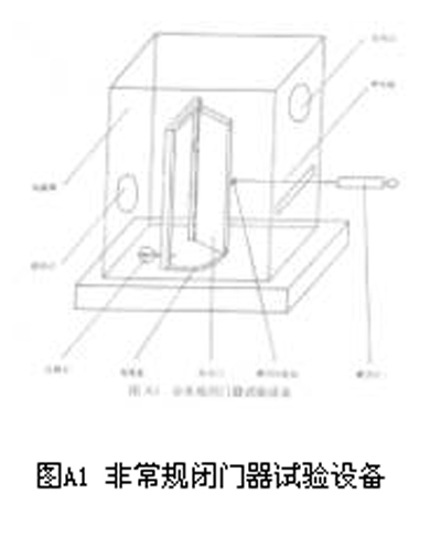 4 试验样品 安装在防火门上使用的闭门器样品,应符合GB 9305的各项技术要求。 5 试验程序 5.1 将闭门器样品安装在试验用防火门上,调整门扇配重,使其重量与被测闭门器样品的规格相适应。 5.2 安装保温罩,将闭门器样品置于保温罩内,联接风道与保温罩进风口。 5.3 将4支热电偶布置在保温罩内,每支热电偶的端部距闭门器样品10mm。 5.4 开动风机、加热器、温度测控仪表,使保温罩内的平均温度以10℃/min的速率升到150±10℃,持续5min。在150±10℃条件下,分别测试5.5、5.6、5.7、5.8项。 5.5 开启力矩的测试 当门扇处于全闭位置时,用测力计垂直于门扇 ,匀速开启门扇,测出门扇开启角度在±1°时的拉力,连续测定三次,取其算术平均值,换算出开启力矩。门扇的开启速度以能读出测力计刻度为原则。 5.6 关闭力矩的测试 全打开调速阀,用测力计垂直于门扇,将门扇开启20°后自行关闭,测出门扇开启角在5±1°时的拉力,连续测定三次,取其算术平均值,换算出关增长力矩。门扇的关闭速度以能读出测力计刻度为原则。 5.7 关闭时间的测试 全关闭调速阀,门扇开启70°后自行关闭,用秒表测得最大关闭时间;全打开调速阀,门扇开启70°后自行关闭,用秒表测得最小关闭时间。 5.8 复位偏差的测试 全打开调速阀。门扇开启70°~90°自行完全关闭,重复四次,测出每次位移计的读数,以第四次读数与前三次读数平均值之差,换算出复位偏差。 6 判定条件 6.1 试验过程中,闭门器样品应无破损、变形现象。 6.2 闭门器样品的开启力矩和关闭力矩应符合表1所列数值。 表1