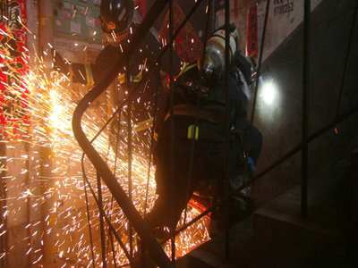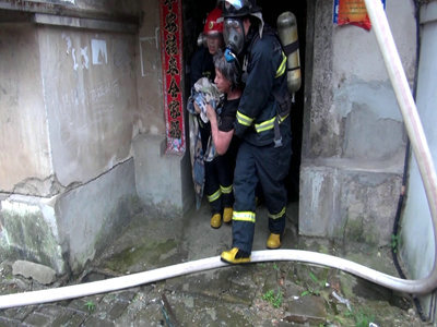 到达现场后,经侦查发现,起火房屋正处于猛烈燃烧突破外壳阶段,现场浓烟滚滚,整间现场被烟雾笼罩,如不及时控制,后果将不堪设想。经询问现场知情人得知,房屋门窗被反锁,屋内尚有一名残疾老人为及时救出,情况十分紧急。指挥员迅速下达作战命令,将指战员分成两组:第一小组由主战消防车出一支火枪,直击火点;第二小组全副武装准备展开救援。