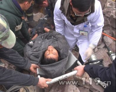 被困人员被台上担架